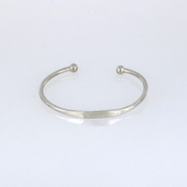 Pulsera rígida de 2.45 mm de ancho y 5.5 cm de diámetro,con bolas lisas de 5 mm en la terminación.