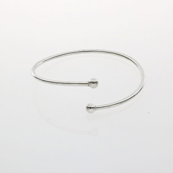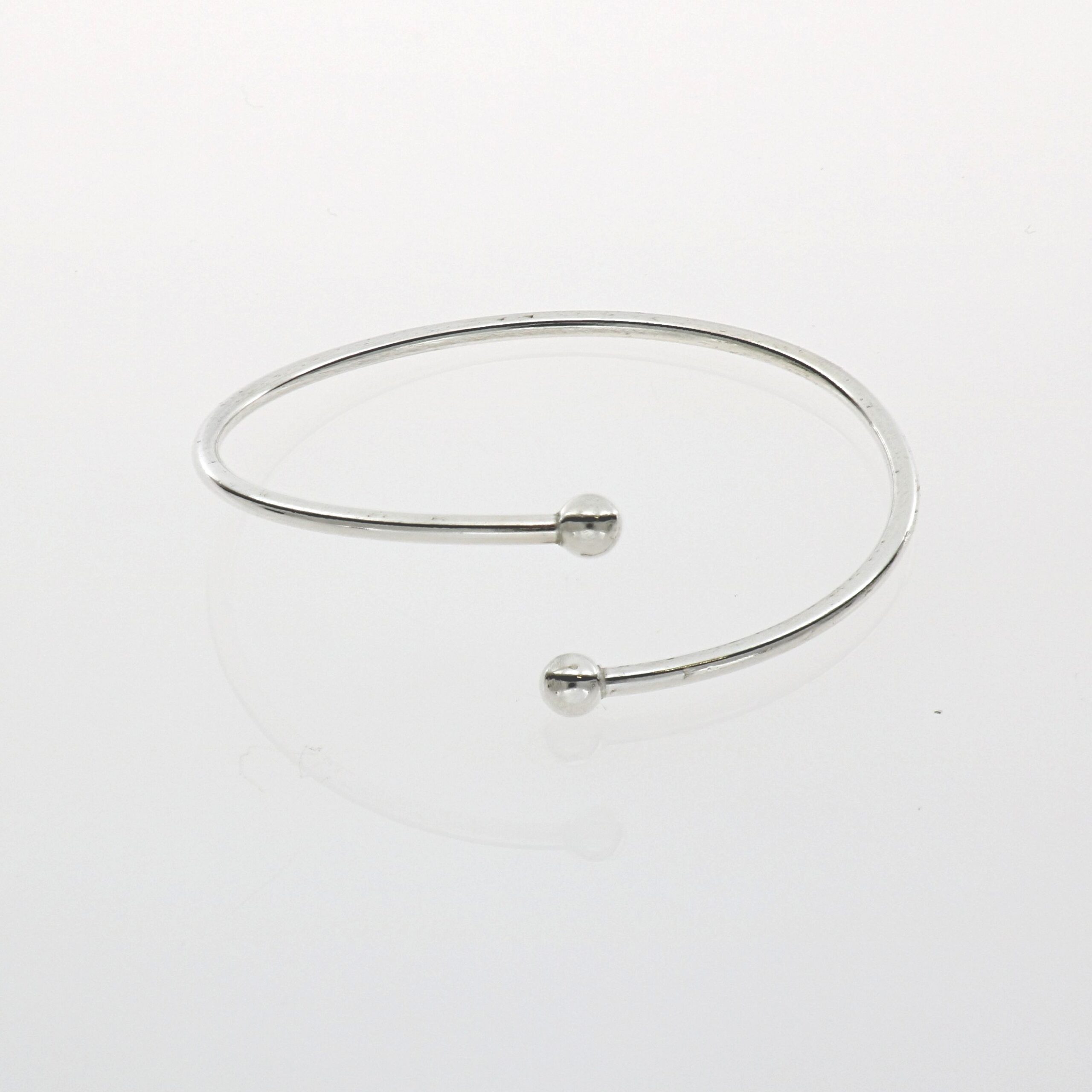 Pulsera rígida hilo de 2.40 mm , de diámetro 5.5 cm y bolas lisas de 6 mm en las terminaciones.