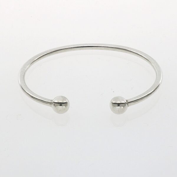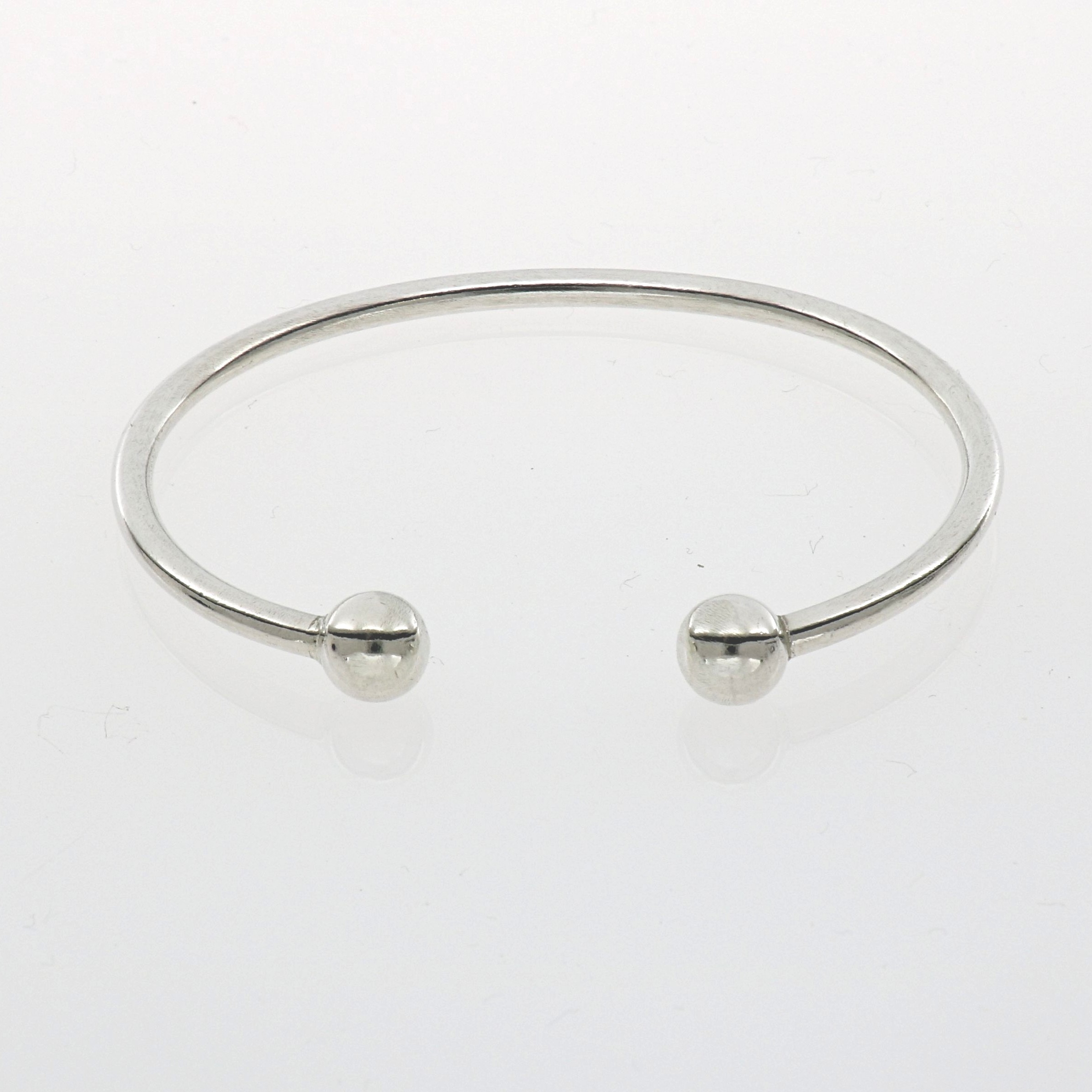 Pulsera rígida hilo redondo de 3.10 mm , diámetro 6 cm y bolas lisas de 8 mm en las terminaciones.