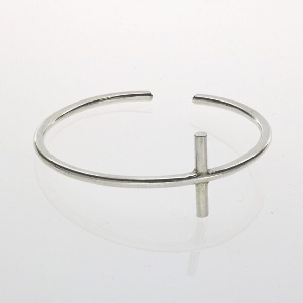 Pulsera rígida hilo de 3.15 mm y 5.5 cm de diámetro,con cruz en el lado.