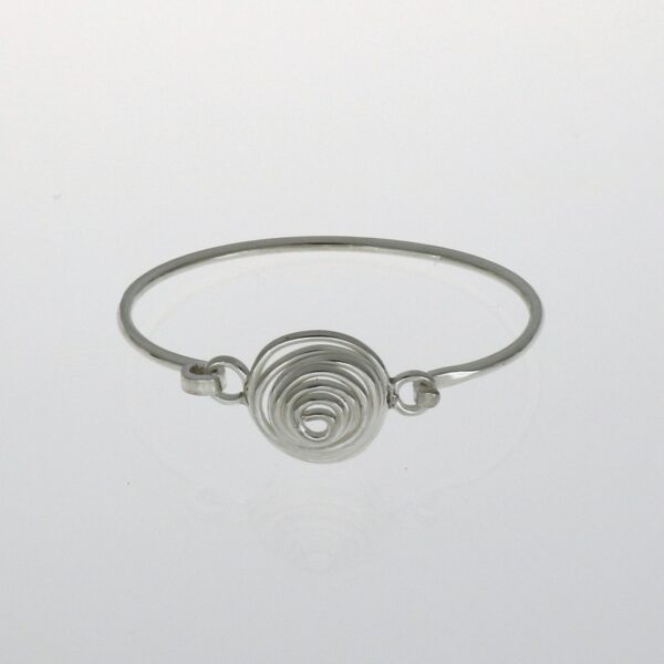 Pulsera rígida de 2 mm. Con espiral en el centro de 20 mm de diámetro y que forma el cierre.