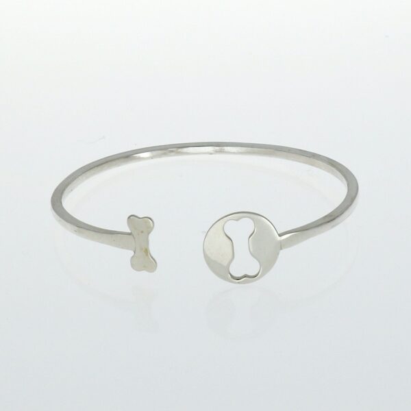 Pulsera rígida hilo cuadrado de 2.45 mm y 5.5 cm de diámetro,con huesos en los extremos.
