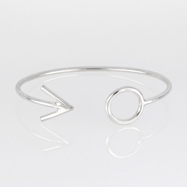 Pulsera rígida con símbolo masculino en los extremos.2.20 mm y 6.5 diámetro. Plata de ley de 925 milésimas.