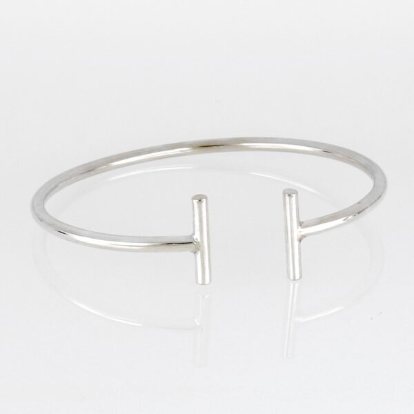 Pulsera Rigida de Plata abierta aro liso de 3 mm con T en los extremos
