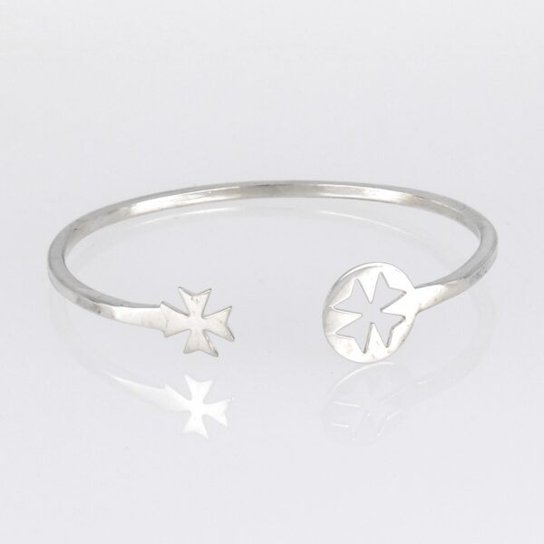 Pulsera Rigida de Plata abierta con cruz de Malta en extremos una calada en circulo. T grande
