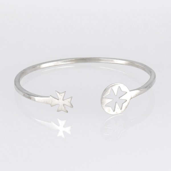 Pulsera Rigida de Plata abierta con cruz de Malta en extremos una calada en circulo. T mediana