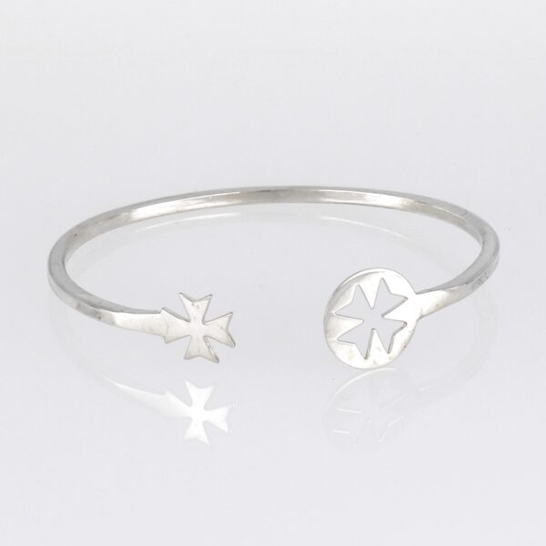 Pulsera Rigida de Plata abierta con cruz de Malta en extremos una calada en circulo. T pequeña