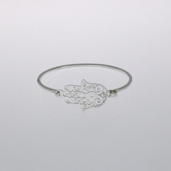 Pulsera rigida de Plata aro cuadrado con manita de Fatima en cierre