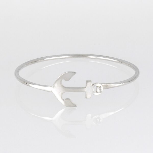 Pulsera Rigida de Plata aro liso con ancla plana en cierre. T pequeña