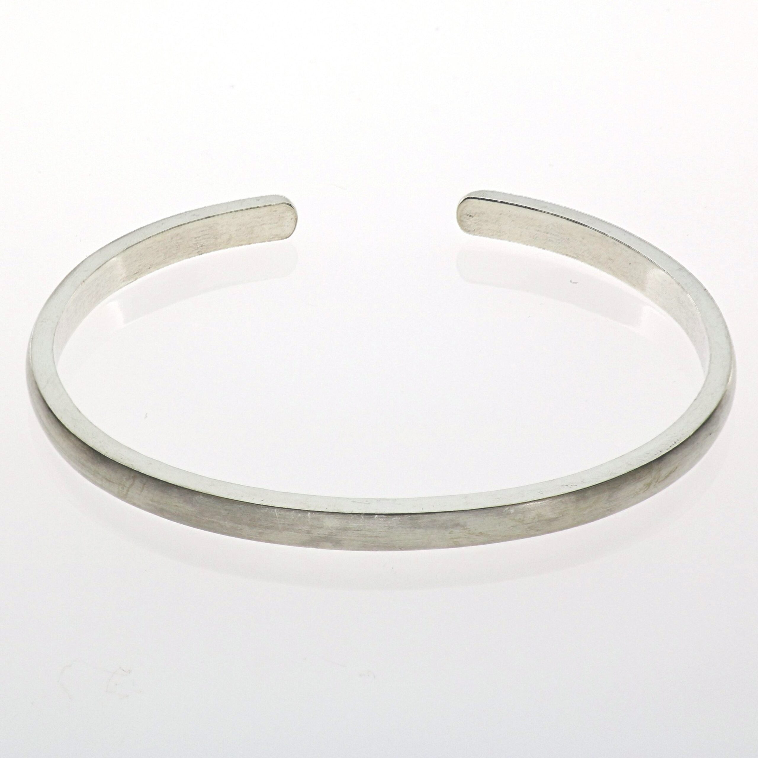 Pulsera satinada de 5 mm de ancho, 3 mm de grueso y 7 cm de diámetro.