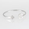 Pulsera rígida hilo cuadrado de 2.25 mm y 6 cm de diámetro,con trébol de cuatro hojas en los extremos.Plata de ley de 925 milésimas.