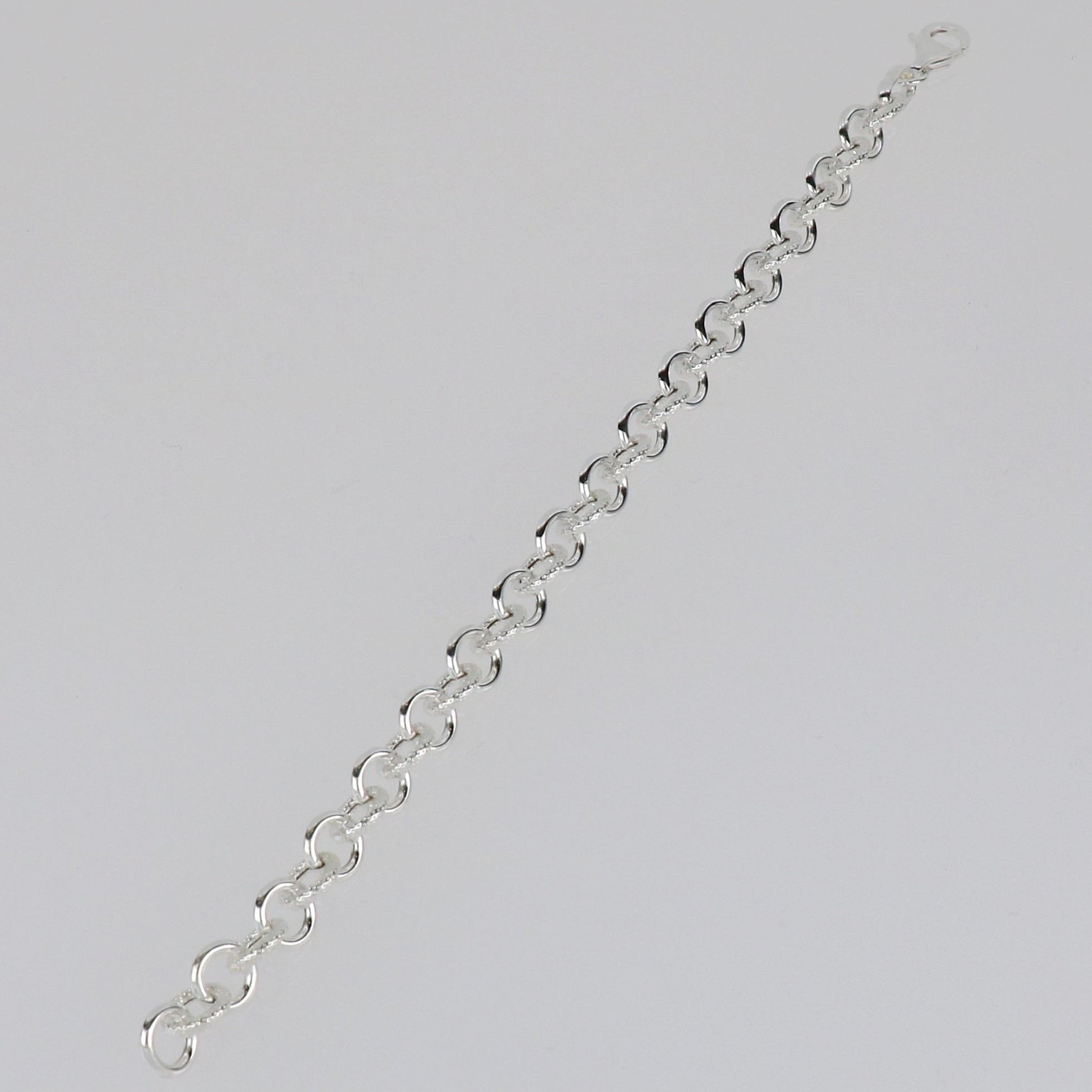 Pulsera hueca de rolo redondo de 8.25 mm de diámetro. Eslabones combinados lisos y tallados. Pulsera de 19.5 cm de largo. Plata de 925 milésimas.