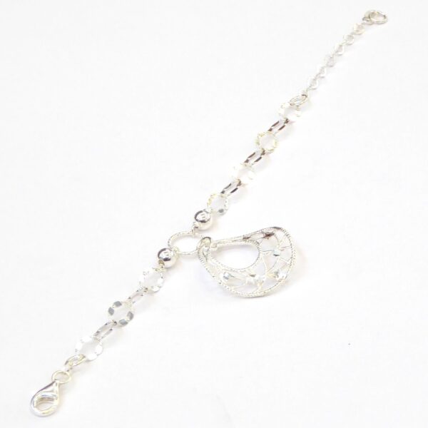 Pulsera lisa con colgante redondo de 2.5 cm por 2.5 cm. Plata de ley de 925 milésimas.