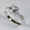 UncategorizedSolitario rodiado con circonita cuadrada en el centro de 6.10 mm y ocho circonitas de 1 mm engarsadas en el anillo.