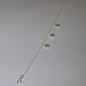 Tobillera cadena veneciana con piedras de color celeste. 22 cm de largo y 3 cm de alargador. Plata de ley de 925 milésimas.