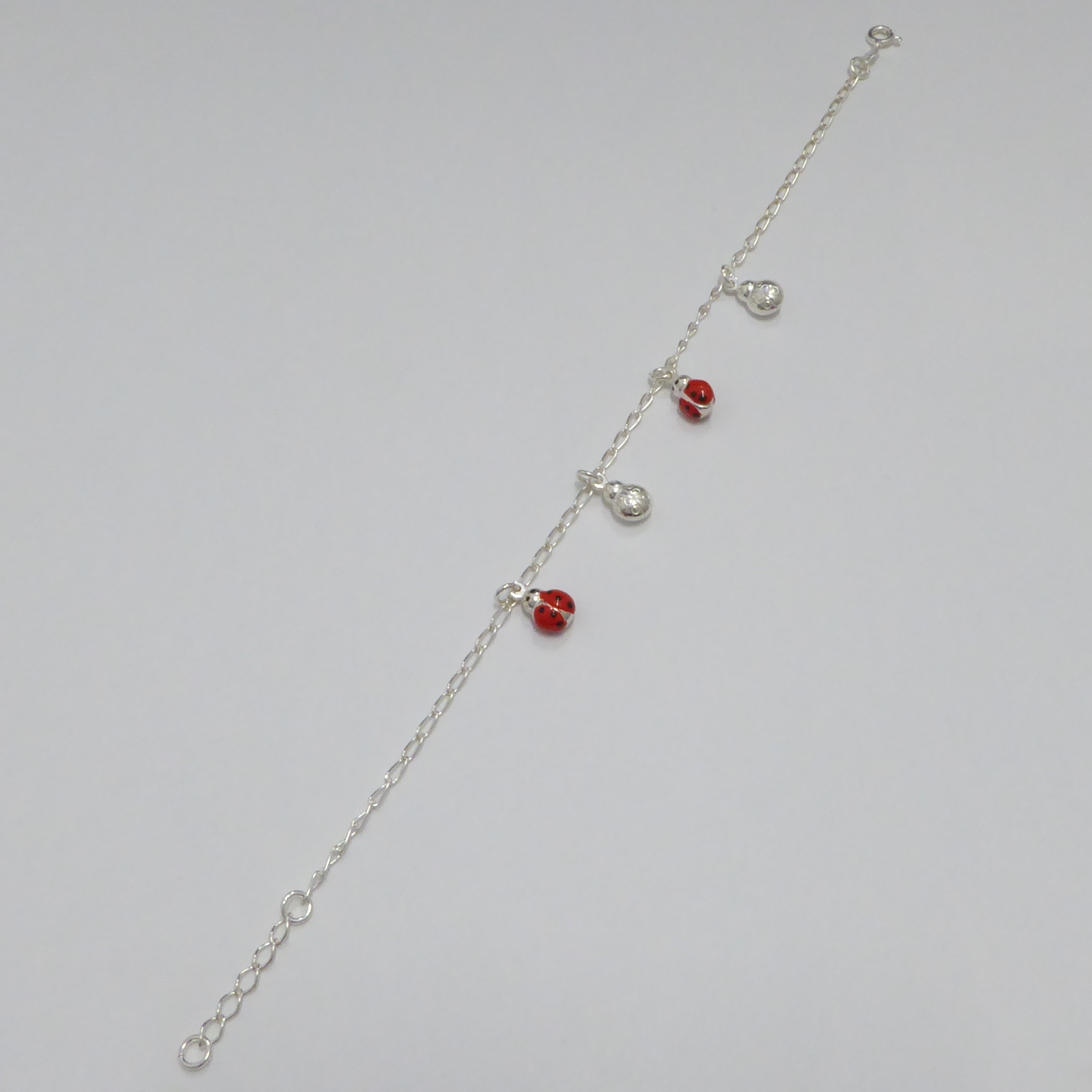 Tobillera de Plata rodiada con dos arbol de la vida y bolita
